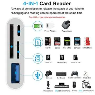 SUNTRSI SD Card Reader for iPhone,USB Camera Adapter 4 in 1 USB Female OTG Adapter for SD/TF Card, Memory Card Reader USB Adapter for iPhone with Charging Port,Plug and Play