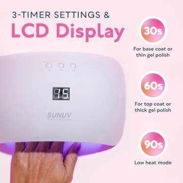 SUNUV SUN8 UV Light for Nails, UV LED Nail Lamp with 3 Timer Settings, Auto Sensor LCD Display Compatible with All Gel Polish Pink