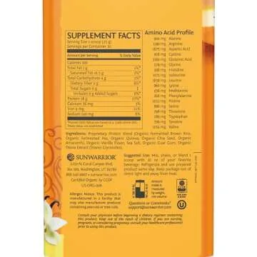 Sunwarrior Vegan Organic Protein Powder Plant-Based | 5 Superfood Quinoa Chia Seed Soy Free Dairy Free Gluten Free Synthetic Free Non-GMO | Vanilla 30 Servings | Classic Plus