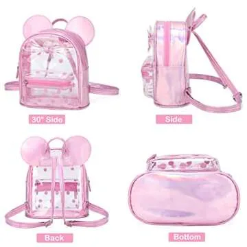 Sunwel Fashion Little Girls Mini Clear Backpack Cute Ears with Glitter Polka Dots Bow Transparent Daypack See-thru Backpack (Pink)