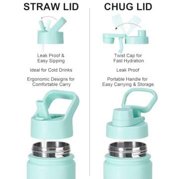SUNWILL Insulated Water Bottle with Straw, Sports & Travel Water Bottle 22oz Double Walled Stainless Steel, Cup Holder Friendly, Reusable Thermal Wide Mouth Flask, Leak Proof BPA Free