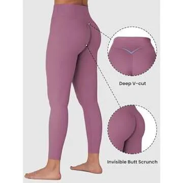 Sunzel Sunzfly Invisible Butt Scrunch Workout Leggings for Women, Butt Lifting High Waisted Gym Yoga Pants with Tummy Control 25" Bordeaux Rose Small