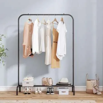 SUOERNUO Garment Rack for Hanging Clothes Rack Heavy Duty Portable with Bottom Metal Shelf Drying Coats Shirt,Black (Black)
