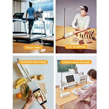 SupeDesk Selfie Stand, Portable Cell Phone Stand,Compatible with 3.5-6.1" Phone for Live Streaming,Overhead Phone Mount,Chargeable Remote,7 Stage Brightness,360° Rotate,Vlog/YouTube/Tiktok