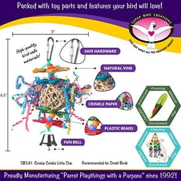Super Bird Creations SB541 Crinkle Crinkle Little Star Bird Toy - Small Bird Size, Parrotlets, Cockatiels, Lovebirds - Foraging & Chew Toy - Stimulating Bird Toy for Enrichment - 6" x 2"