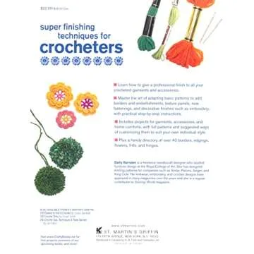 Show more Super Finishing Techniques for Crocheters is an essential guide for all crochet enthusiasts looking to elevate their crafting skills. This comprehensive 128-page book not only caters to beginners but also offers valuable insights to seasoned crocheters. With a wealth of information on completing projects beautifully, this book covers everything from adapting basic patterns to adding stunning borders and embellishments. The clear, step-by-step instructions, paired with vibrant colored photographs and diagrams, make it a user-friendly resource that will inspire creativity and confidence in your crochet journey.