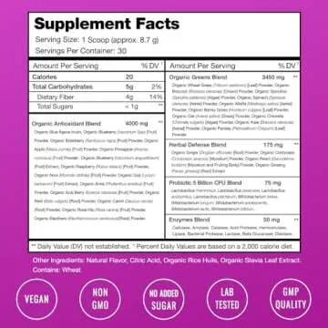Super Greens Powder Premium Antioxidant Superfood | Organic Greens Fruit and Veggie Vegan Supplement | 40+ Greens and Superfoods Including Wheatgrass & Spirulina | Probiotic Powder Greens, Sweet Berry