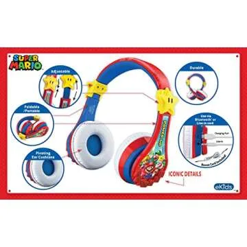 Show more Introducing the perfect auditory companion for every child – the Bluetooth Headphones for Kids! These headphones boast a beautiful design inspired by the beloved characters of Super Mario Bros, making them an instant favorite among young gamers and fans. Connectivity is a breeze, as these headphones can wirelessly connect to any device including smartphones, tablets, and computers, allowing kids to enjoy an exceptional stereo sound experience for both entertainment and education.