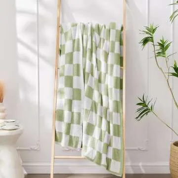 Super Soft Luxurious Warm Checkered Throw Blanket - Reversible for Couch, Bed, Sofa - 50x60 Inches - Green and White