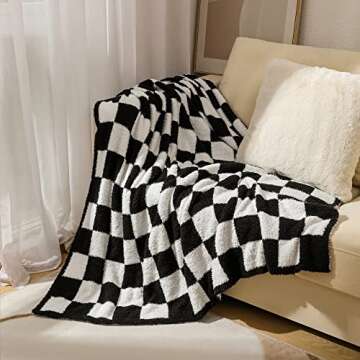 Show moreIf you are looking for the perfect blend of luxury and comfort, look no further than the Super Soft Luxurious Warm Checkered Throw Blanket. Measuring 60x80 inches, this stunning black and white checkered reversible blanket effortlessly combines style and functionality, making it an essential addition to your home. Imagine lounging on your couch or bed, enveloped in the cloud-like softness of this lightweight and breathable knitted fabric, offering an unparalleled cocoon of warmth during those chilly evenings.