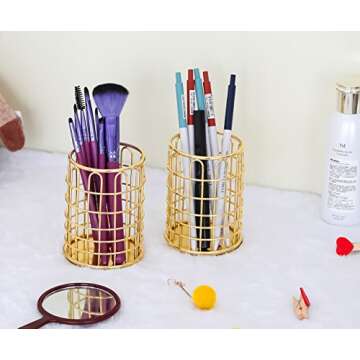 superbpag Metal Pen Holder, 2 pack Makeup Brushes Cup Pencil Holder for Home School Office Dormitory, Gold