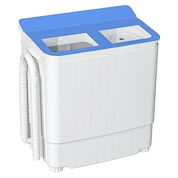 With a significant total capacity of 21.6lbs (washer tub: 15lbs, spin tub: 6.6lbs), this versatile appliance can handle light to medium laundry loads with ease. Its practical twin tub design lets you wash and spin dry your clothes simultaneously, saving you valuable time. Made with a durable plastic body that is rust-proof, this washing machine is not only built to last but also features a transparent blue design for easy monitoring of your laundry process.