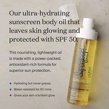 Show moreIntroducing the Supergoop! Everyday SPF 50 Sunscreen, a revolutionary sun protection formula that combines high-performance skincare with an ultra-lightweight feel. Unlike traditional sunscreens that leave behind an unattractive residue and an overwhelming odor, this innovative sunscreen is seamlessly absorbed into the skin, offering robust protection without the hassle. Its unique formulation ensures that the SPF is hidden within a light, moisturizing oil that nourishes your skin while providing daily sun defense. With a refreshing citrus scent that lightly fragrances the skin, you won't even notice you're wearing sunscreen! Experience the clarity and comfort of sun protection that has won the hearts of users everywhere.