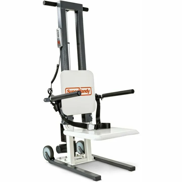 Show more The SuperHandy GoRise FS Electric Floor to Stand Lift is a game-changer for seniors and individuals with disabilities. Designed to provide standing assistance, this versatile lift offers a maximum capacity of 500 lbs, ensuring it can comfortably support a wide range of users. Its ergonomic design and adjustable settings make it a practical and user-friendly solution for those needing help moving from a floor position to a standing one. The lift's portable nature means it’s easy to store and move, akin to a hand truck, enhancing its convenience for caregivers and users alike. The device features dual power options, including both battery and AC power, with the power cord doubling as a battery charger. This ensures the lift is always ready for use. A highly visible light on the battery indicates charging status, providing an added layer of user assurance. The SuperHandy GoRise FS Electric Lift is crafted from high-quality parts, ensuring durability and reliability.