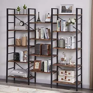 SUPERJARE Triple 5 Tier Bookshelf, Bookcase with 14 Open Display Shelves, Ladder Bookshelf, Wide Book Shelf Book Case with Steel Frame, Wood Board, for Home & Office, Dark Brown