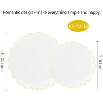 These gold-and-white disposable plates come in a versatile set of 50 dinner plates (10.25 inches) and 50 dessert/salad plates (7.5 inches), perfect for any social occasion. Be it birthdays, Thanksgiving, Christmas, Easter, or just a casual gathering, these plates are designed to impress while making your cleanup a breeze.