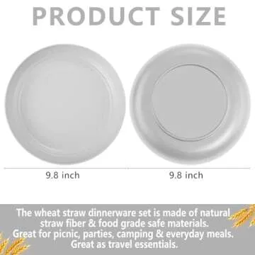 supernal 16pcs Grey Wheat Straw Plates,Hard Plastic Plates Reusable,Unbreakable Dinner Plates,Reusable Plastic Plates,Deep Dinner Plates,Dishwasher & Microwave Safe for Camping, Picnic