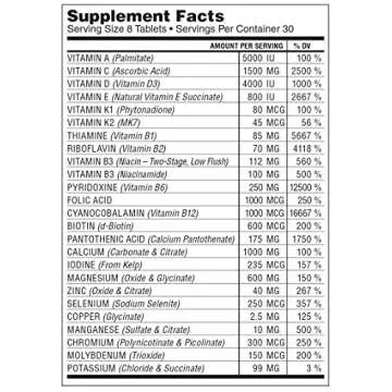 This multi-vitamin provides comprehensive immune support, enhances bone and heart health with Vitamin K2, and is rich in antioxidants.