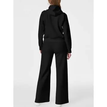 SuperPrity Women 2 Piece Outfits Sweatsuits 2024 Fall Fashion Zip Up Hoodie Sweatshirt Sweatpants Tracksuit Matching Sweat Lounge Sets-S,Black