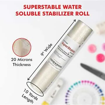 Show more Introducing the perfect companion for all embroidery enthusiasts: the Wash-Away Stabilizer from Superpunch, a trusted American brand known for delivering quality products since 1996. This innovative stabilizer is specifically designed to dissolve completely in cold or warm water, making it an essential tool for your embroidery projects. With a thickness of 20 microns and a generous size of 9 inches wide and 10 yards per roll, this stabilizer ensures that all stitches remain beautifully on top without sinking into your fabric.