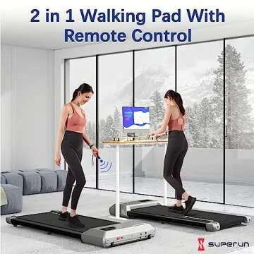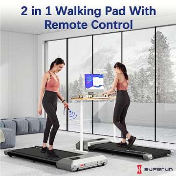 Show more Introducing the ultimate solution for fitness enthusiasts and busy professionals alike – the Superun 2 in 1 Under Desk Treadmill. This innovative walking pad offers unparalleled convenience, allowing you to exercise while working or relaxing at home. Forget about the weather; rain or shine, this treadmill ensures that you stay active anytime, anywhere. Designed with a powerful 2.5 horsepower motor, it can support up to 300 lbs, making it suitable for a wide range of users. One of the most remarkable features is its near-silent operation, allowing you to walk in comfort even during late-night hours.