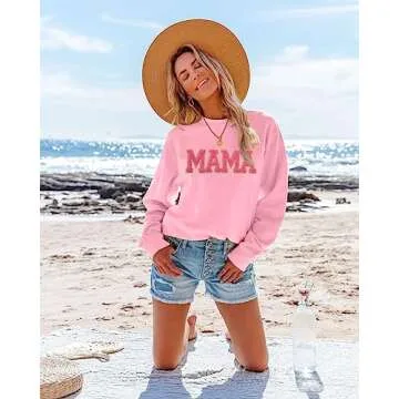 SUPEYA Mama Sweatshirt Womens Glitter Patch MAMA Shirt Mama Letter Print Long Sleeve Loose Fashion Pullover Top Pink