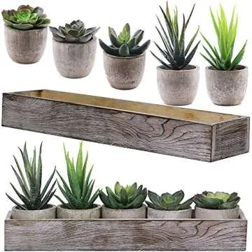 Supla Set of 5 Mini Fake Succulent Cactus Aloe Potted Plant Arrangements Decorative Assorted Potted Artificial Succulents Plants in Gray Pots Succulent Plants Wood Planter Arrangement
