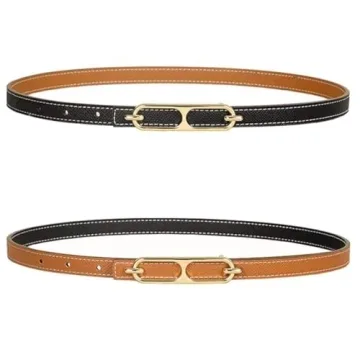 Show moreDiscover the elegance and versatility of the SUPLEAP Women's Fashion Belt, a must-have accessory for any wardrobe. Crafted from top-quality leather, this skinny belt boasts a double-sided design, offering two stylish colors in one. The gold alloy buckle is not only removable for easy styling but also firmly installed to ensure durability. Designed to fit waist sizes 27"-37", it's the perfect complement to jeans and dresses alike.