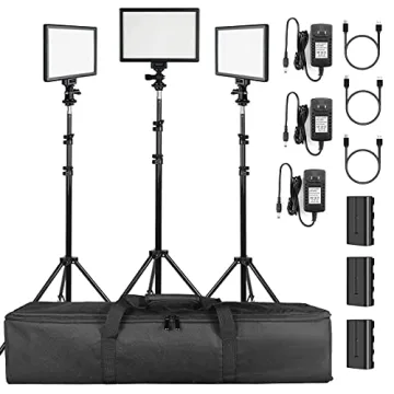 SUPON 3 Pack LED Video Light Stand Lighting Kit with Battery/Charger for Studio Photography YouTube Video Shooting,Bi-Color 3300K-5600K Ultra Slim Countinuous Output Lighting Panel