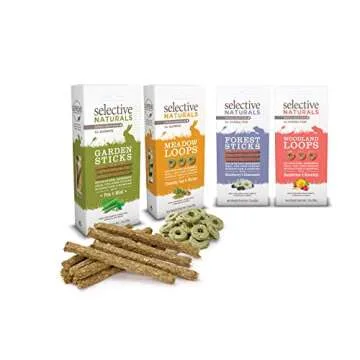 Show moreIndulge your furry friends with the delectable and nutritious Supreme Petfoods 3 Pack of Selective Naturals Garden Sticks Rabbit Treats. Each 2.1-ounce bag is filled with a delightful combination of Timothy hay, peas, and mint, carefully crafted to delight your pet’s taste buds while providing essential nutrients. These crunchy and wholesome treats are more than just a snack; they are a source of enjoyment and health, recommended by veterinarians for rabbits, guinea pigs, chinchillas, and degus. The mix of natural ingredients supports your pet's overall well-being, making treat time both delicious and beneficial.