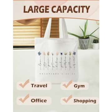Supwhd Bible Bags for Women, Christian Tote Bag, Fruit of the Spirit Galatians 5:22-23, Gifts for Christian Women, Bible Verse Christian Canvas Tote Bags for Women