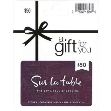 Give the gift of culinary creativity with the Sur La Table Gift Card, a perfect present for food lovers and aspiring chefs alike. . Whether they are seasoned kitchen wizards or just starting to explore the ingredients of life, this gift card opens the doors to a world of cooking possibilities. Sur La Table is known for its high-quality cookware, specialty tools, and unique dining products, making it an ideal choice for anyone passionate about food.