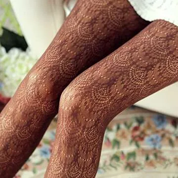 SurBepo Women Fishnet Hollow Out Knitted Patterned Thick Warm Stockings Tights Vertical Strips Pantyhose For Female(B-Coffee, One Size)