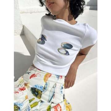 SurBepo Womens Y2K Baby Tees Vintage Short Sleeve T Shirts E-Girls Graphic Print Slim Fit Summer Crop Tops(White-5,M), Medium