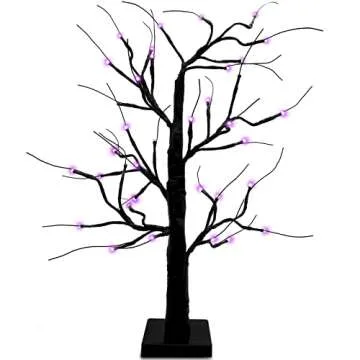 Show more Transform your Halloween decor with the mesmerizing 2 FT Halloween LED Spooky Tree. Crafted from black birch, this enchanting tree features a stunning display of 36 purple LED lights that create an eerie ambiance perfect for any haunted celebration. The Halloween-themed paper fence adds an extra layer of spookiness, making it an ideal centerpiece for your Halloween festivities.