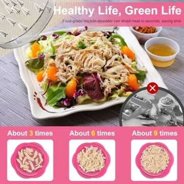 SURETIVIAN Chicken Shredder Large Chicken Breast Shredder Tool Twist with Brush&Fork, Visible Meat Shredder Machine, Anti-Slip Strip, Ergonomic Handle, BPA Free, Pork Beef Chicken(Hot Pink)