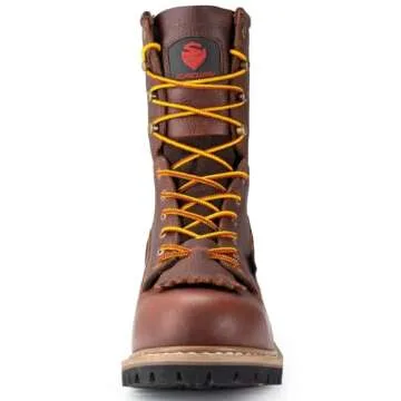 SUREWAY Men's 8" Waterproof Steel-Toe Logger Work Boot,Superior Oil/Slip Resistant,Thicker Full Grain Leather,Wedge Rubber Sole,EH Rated