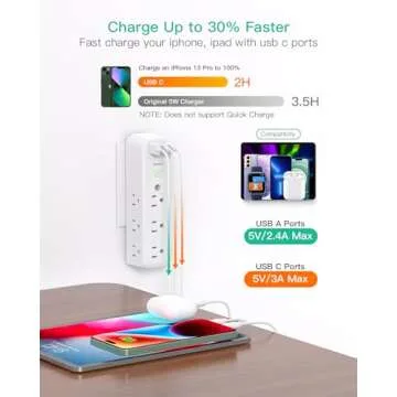 Surge Protector Outlet Extender, 9 AC Multi Plug Outlet with 3 USB Ports (2 USB C), 1080 Joules, 3-Sided Power Strip with Spaced Outlet Splitter for Home, Dorm Room Essentials