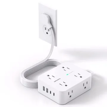 Show moreIntroducing the revolutionary 12 in 1 Power Strip, a product designed to revolutionize your charging and power management needs. This innovative power strip features 8 AC outlets and 4 USB charging ports, including 2 USB-C ports, enabling you to power and charge up to 12 devices simultaneously. No more worrying about bulky adapters blocking your other outlets; the thoughtfully designed layout ensures that the spaces between each outlet are 2.2 inches apart, accommodating even the largest adapters with ease. Built by a trusted brand committed to quality and functionality, this product stands out for its ultra-slim flat plug which measures only 0.35 inches, allowing it to be cleverly positioned close to the wall. This means it can be discreetly placed behind furniture, beds, or refrigerators, ultimately creating a clutter-free environment.