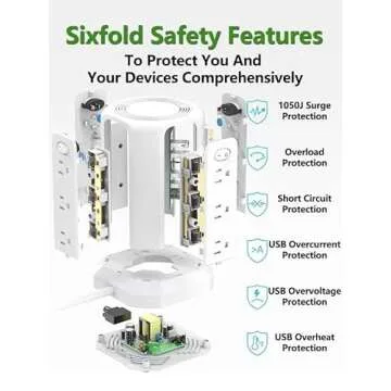 Show more If you're looking for an all-in-one solution to manage your charging needs, look no further than the Surge Protector Power Strip. This feature-rich power strip comes equipped with 12 outlets and 4 USB ports (including 1 USB-C) to ensure that all your devices are charged efficiently. Featuring a generous 10FT extension cord, it's perfect for extending power to the far reaches of your living space without sacrificing functionality. Smart USB charging technology enables it to detect connected devices and deliver optimal charging speeds up to 48% faster, making it a must-have for tech-savvy individuals and families alike.