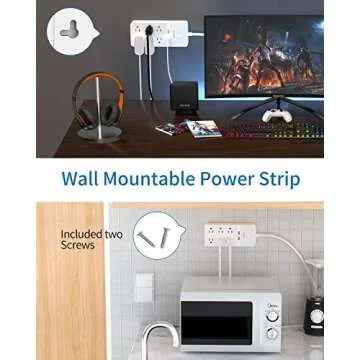 This power strip goes beyond just functionality with its wall mountable design. Featuring 2 holes at the back, it can be securely installed in various locations, giving you the freedom to avoid clutter and keep your area organized. Alternatively, with 4 rubber foot pads on the base, it ensures stability on any surface without slipping or shifting, making it versatile for both residential and office environments.
