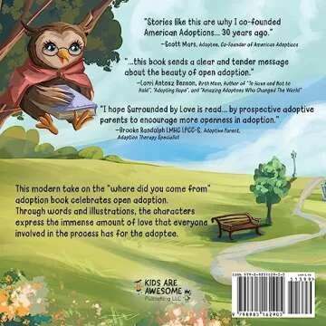 Show more"Surrounded by Love: An Open Adoption Story" is not just a story; it's a heartfelt journey designed specifically for children navigating the complexities of open adoption. This beautifully illustrated book is narrated by a wise and lovable owl, providing a warm, engaging perspective on the adoption process, highlighting the importance of love from both birth and adoptive families. As your child embarks on this journey through the pages of this story, they will discover that adoption is not just a transition, but a tapestry of love woven by many caring souls. The emotional depth captured in this book fosters understanding and appreciation for all aspects of the adoption story.