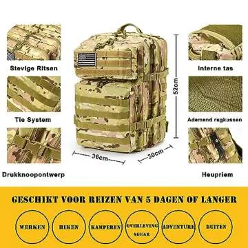 Show more Introducing the ultimate Survival First Aid Kit – your essential companion for outdoor adventures! This professionally curated kit is designed for hiking, camping, fishing, and all outdoor sports enthusiasts, featuring a massive 45L tactical backpack crafted from high-density double-stitched 900D Oxford cloth and nylon fabric. Not only is this backpack incredibly durable and waterproof, it also boasts multiple compartments with double-zipper closures to keep your gear organized and accessible. The dimensions (11.81" x 19.68" x 11.81") ensure ample space for all the multifunctional accessories included in this comprehensive survival kit, making it your go-to solution for safety and preparedness in the wilderness.