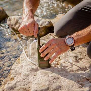 The Survivor Filter PRO uses a multi-stage filtration system to remove harmful bacteria, viruses, and protozoa from water. It allows you to draw water from natural sources and provides clean drinking water nearly instantly.