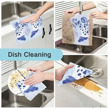 susiyo Staffordshire Dogs in Chinoiserie Style Blue and White Porcelain Kitchen Dish Cloths Reusable Soft Absorbent Quick Drying Windowpane Dish Towels Rag Set of 6, 11x11 Inches