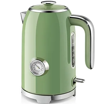 SUSTEAS Electric Kettle - 57oz Retro Green with Thermometer, 1500W Fast Heating, Auto Shut-Off