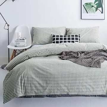 Show more Transform your bedroom into a serene sanctuary with the SUSYBAO Green Gingham Duvet Cover Set. Made from 100% washed cotton, this duvet cover promises the utmost comfort and breathability, providing you with a cozy sleep experience throughout the year. Its unique fabric undergoes a special treatment process that enhances its softness while maintaining durability.