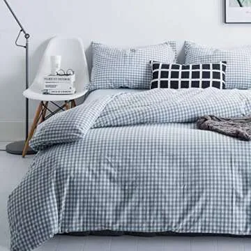 SUSYBAO Light Blue Gingham Duvet Cover Queen 100% Washed Cotton Blue Plaid Duvet Cover Set 3 Pieces 1 Blue Grid Duvet Cover with Zipper Ties 2 Pillow Cases Luxury Gingham Plaid Bedding Set Breathable