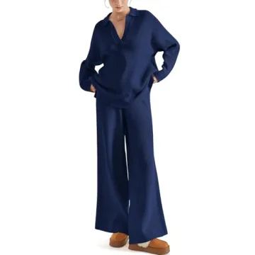 Show more Indulge in the ultimate comfort with the Waffle Knit Sweatsuit Lounge Set, a luxurious fusion of style and coziness. This ultra-soft ensemble is designed for those who appreciate both comfort and fashion, featuring a Polo V Neck Oversized Sweater that showcases a ribbed collar, cuffs, and hem for a classic touch. With long sleeves and a loose fit, this pullover top offers a relaxed vibe that’s perfect for lounging at home or stepping out in style.