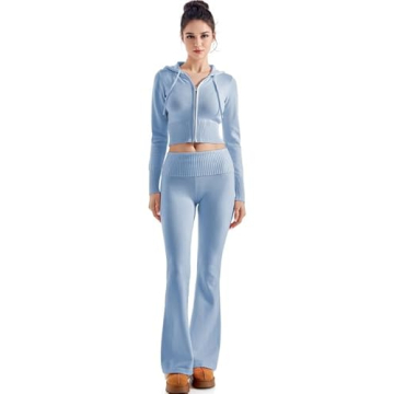 Show moreIntroducing the stylish SUUKSESS Women 2 Piece Knit Set—the ultimate blend of comfort and chic for your fall wardrobe! Crafted with care for the modern woman, this set includes a cropped zip-up hoodie and matching foldover flare leg pants, combining functionality with a fashionable aesthetic that’s perfect for any occasion. The cropped design of the hoodie accentuates your silhouette, while the zip-up feature allows for easy wear, making it a versatile choice for everything from relaxed outings to stylish get-togethers.